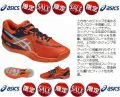 シーズンOFF 在庫処分値下!! GEL-BLAST6 0950(オレンジ×ネイビーブルー) ■アッパー/本体=人工皮革製+合成繊維製 補強=人工皮革■インナーソール:取り替え式 ■アイターソール:ゴム底 上方向へのジャンプを高めるテクノロジーを搭載した、スタビリティトップモデル。 ミッドソール中足部から後足部にかけてハードE.V.A.を搭載。後足部のブレーキを向上させ、上方向へのジャンプをサポート。 アッパーに搭載されたダイナミックラップがサポート力を高め、足の横ブレやエネルギーロスを抑制。 アッパー前足部はフレクションフィットを採用し、屈曲時にも優れたフィット性を発揮。 ■GEL=衝撃緩衝材。着地時に衝撃を受けるかかと部に内蔵、ショックと疲れを緩和。 ■spEVA(スピーバ)全面=着地衝撃と高い反発力でキックエネルギーをUP。 ■エヌ・シーラバー=天然ラバーのアウターソール素材。粘るハイグリップ、コート面とのズレ防止。 ■マジックベンチレーション=ソールの通気孔から空気を排出し通気性UP。足マメの発生防止。 ■PHF=個人個人の足型に合わせて、ゆっくり変形してフィットする低反発フォームを足首に内蔵。フィット性を向上し足とシューズの隙間を無くします。 ASICS 海外
